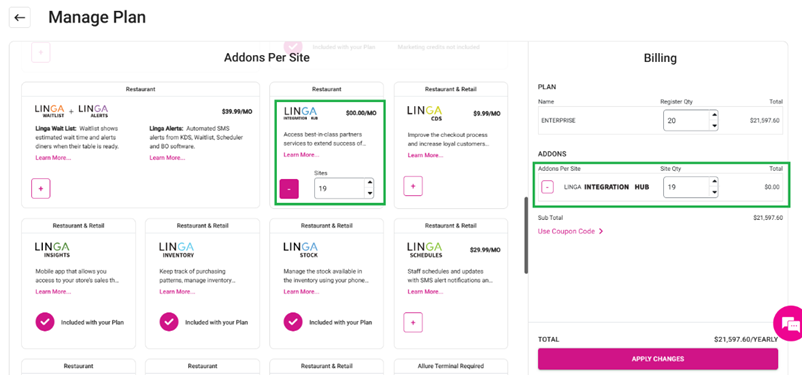 subscribing, you can assign Integration Hub addon(s) (Store level) for the