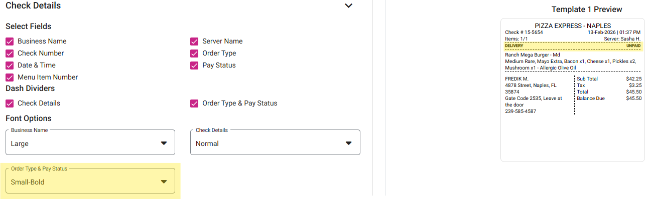 Order Type & Pay Status (example of Small-Bold size)