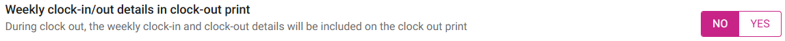 Select whether to include the Weekly clock-in/out details in the clock-out print.