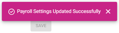 When ready, click Save at the upper-right. The ‘Payroll Settings Updated…’ banner appears and the Save button is greyed-out, confirming that the updates were saved.
