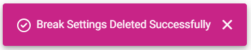 You're returned to the Manage Breaks tab where the break is removed from the table and the ‘Break Settings Deleted Successfully’ confirmation appears.