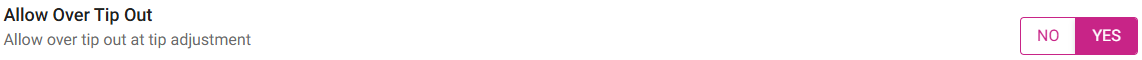 Over Tip Out – If enabled (set to YES), the Tip Out will be shared at Tip Adjustment for the Employee.