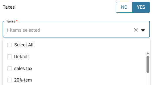 Select whether Taxes will be automatically applied to this Gratuity. If YES, select one or more Taxes (or Default or Select All) from the dropdown list.