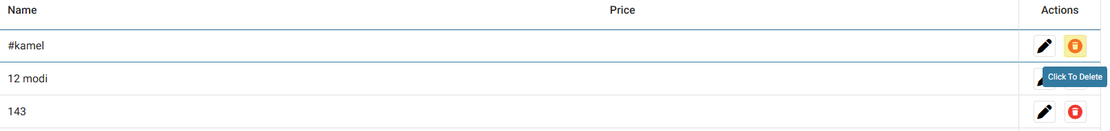 an existing Prefix by clicking in the Prefix Name or Price Field