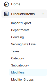 the left-side, select Products/Items then Modifiers.