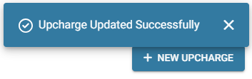 complete, click Save (or if updating, Update) at the upper-right. You're returned to the main Upcharges page, where the confirmation banner appears at the upper-right.