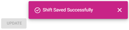 When ready, click Update. at the upper-right. The 'Shift Saved Successfully' appears at the upper-right and the Update button is greyed-out, confirming that the update has been applied.