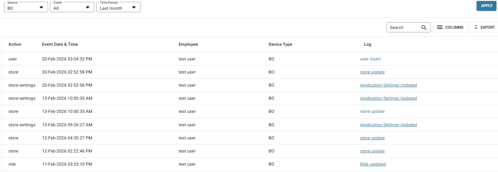 Source: Select either BO (Back Office) or POS (Point-Of-Sale).