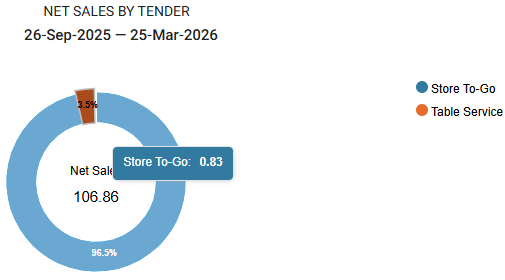 Mouse over a specific section of a circle for its corresponding amount to appear. Example: mousing over Store To-Go