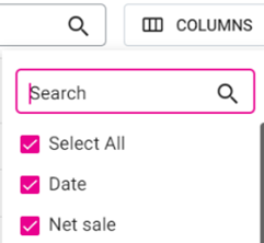 Columns – When a Columns button is clicked, a dropdown is shown where you can Select (show) or Deselect (hide) the columns you wish to view. Click Select All (default) to show or hide all columns.