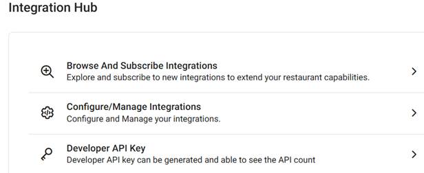 Subscribe to and Configure Restaurant365 in Back Office Page Navigation: Log into Back Office. On the left-side pan, select Home then Integration Hub. On the Integration Hub page, select Browse and Subscribe Integrations. Under the Inventory ...