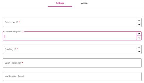 the Dash Customer ID, Customer Program ID, Funding ID and Vault