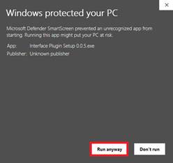 On the Interface Plugin Setup pop-up that appears,