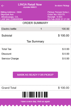 As of now, Linga supports Pickup orders only, and Orders cannot be edited within the POS.
