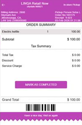 the aggregator, the order is forwarded to Linga, where it appears in the Online