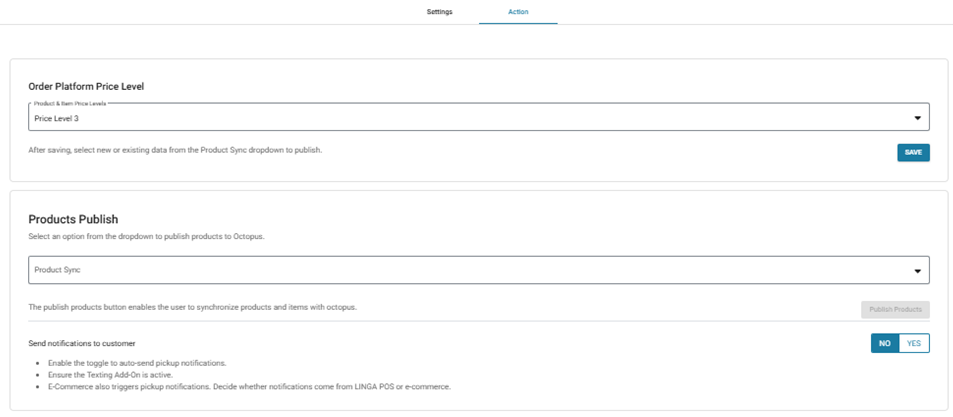 Platform Price Level change in Integration Hub (Octopus Actions Tab)