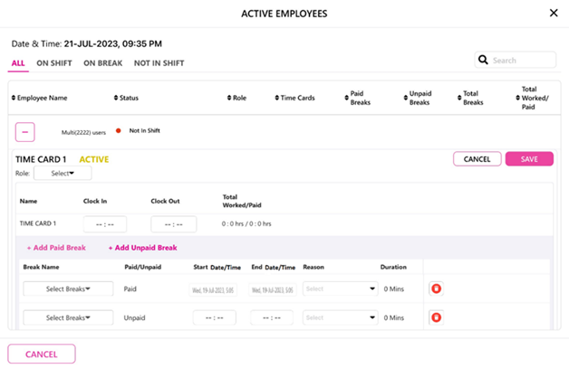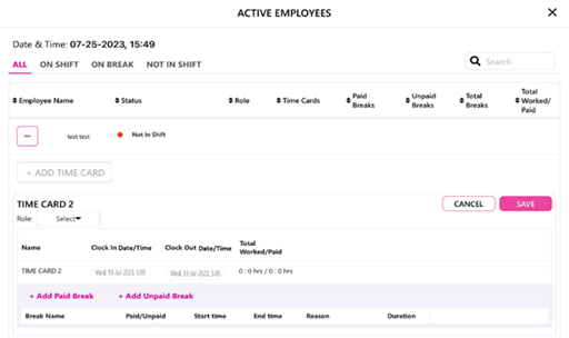 Note: If an Employee forgot to add a Break in POS, it can be added in Back Office.