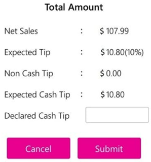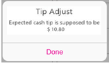 - Expected Cash Tip - Expected cash tip will be displayed.