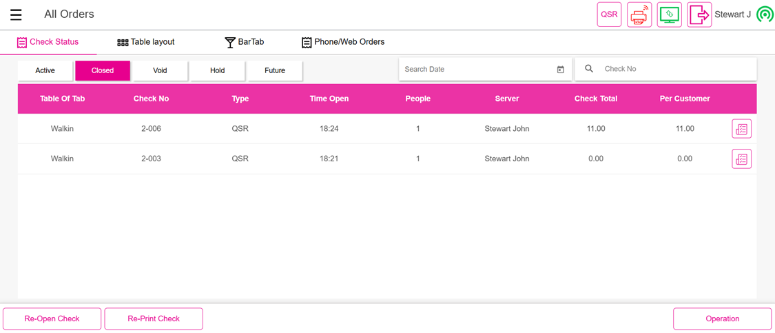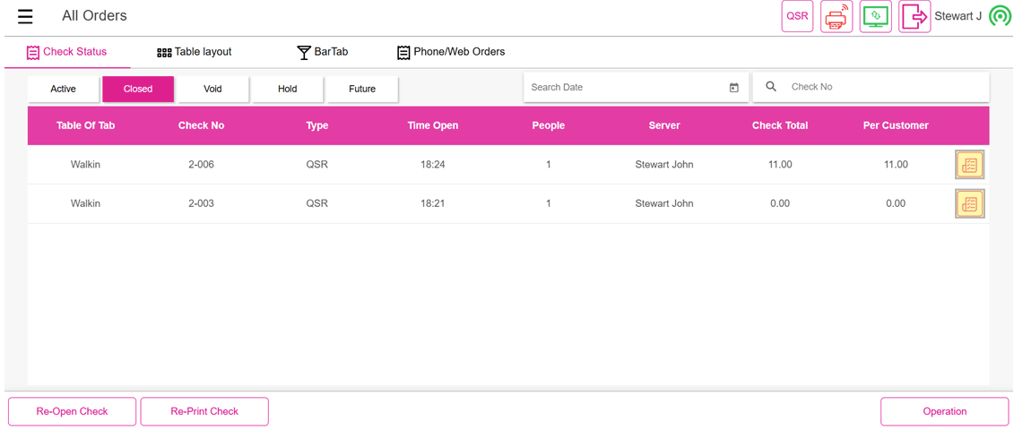 POS: Check Status Screen - Closed Tab
