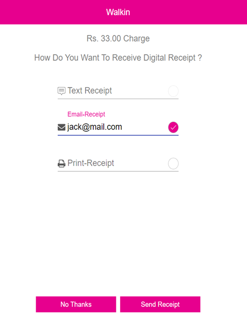 - Click Send Receipt, and the Receipt will be sent to the entered Email Address.
