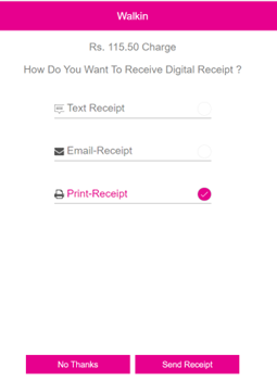- Once the payment is completed, the page will navigate to the Receipt screen, where the Print Receipt option will be available.