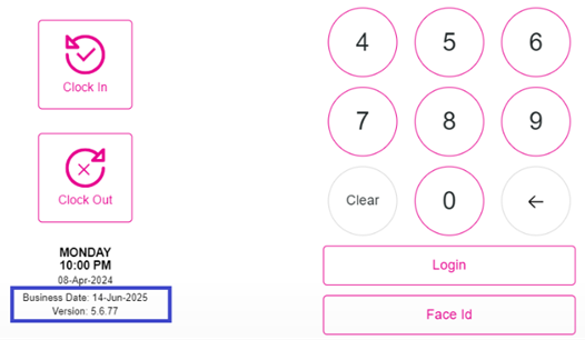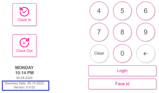 If Time Clock is selected, the Time Clock pop-up login screen appears. Enter the PIN number or Face ID to log in. Clock In When an Employee Clocks-In for the first time that day, the PIN screen will appear. Enter the PIN - or click the Time Clock ...