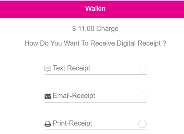 - If Text Receipt is selected: the customer enters their Phone Number. If the Customer is already registered, their respective Number will pre-populate.