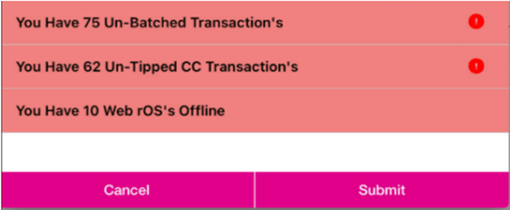 - For Manual Close Day - The Submit button (at the bottom-right of the Close the day Checklist) will be enabled only when all checks are manually closed.