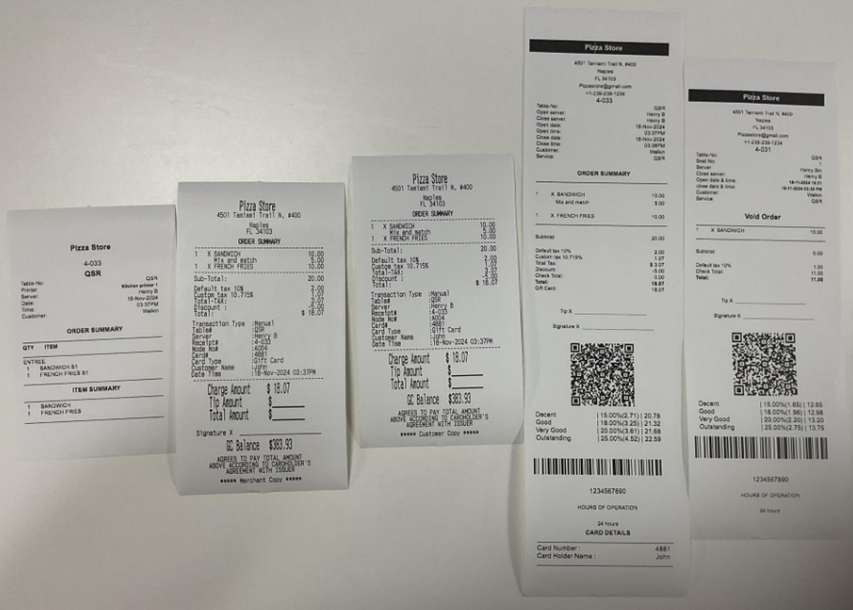 Receipts apply to Front End, Merchant Copy, Customer Copy and Itemized