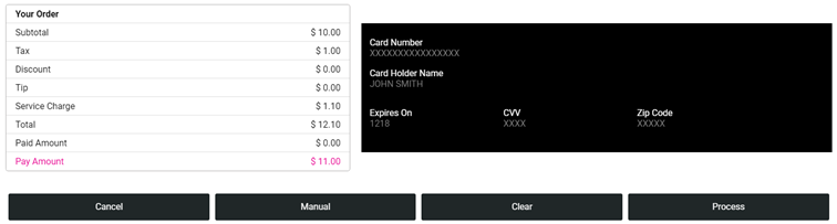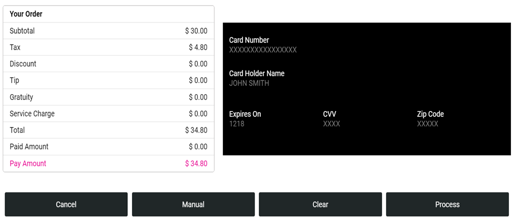 will be three options - Cancel, Manual, Process payment at the bottom.