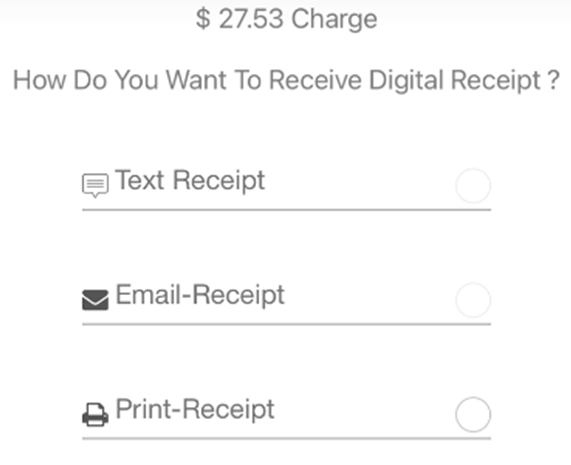 On the Digital Receipt screen: select whether the Receipt / Bill needs to be sent via SMS, Email or