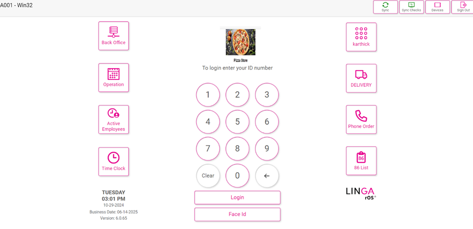 Once signed in, the Login screen appears: The Login screen displays the following buttons: - Select Back Office to navigate the Back Office (for more info, please refer to the Back Office section of the Knowledge Base) - Select Operation to navigate ...