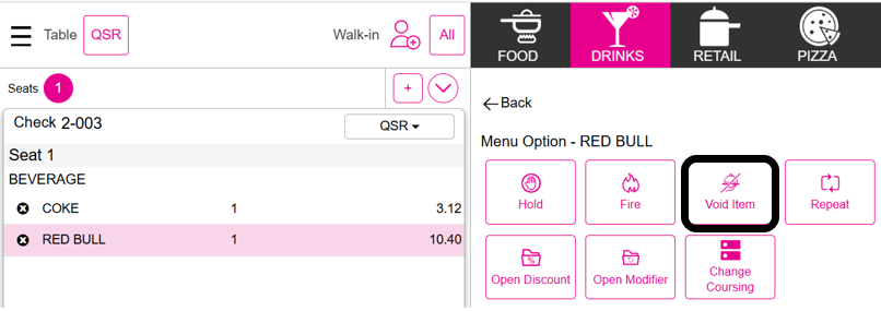 - Void item before ordering o Tap on the item o Select void and the item will be removed from the check - Void item after ordering o Tap on the item o Select void o Select void reason or type in a reason and tap add o ...