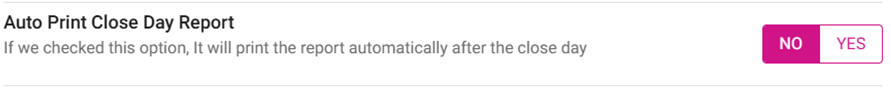 - If YES is selected, the system will automatically print the Receipt when Close Day is performed.