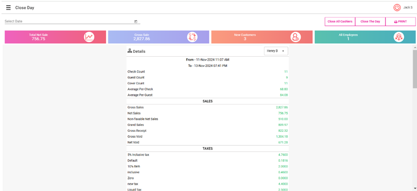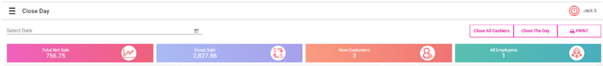 If YES was selected for the Auto Print toggle in BO, the system will trigger the printing of the Receipt automatically when Close Day is performed.