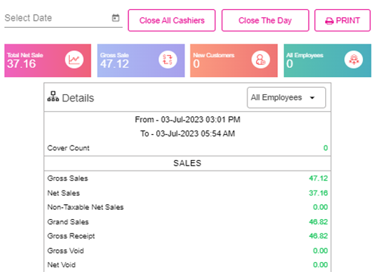If the entered PIN is valid, you will be taken to the Close the Day screen.