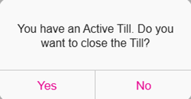 A pop-up with the message 'You have an Active Till. Do you want to close the Till?' appears.