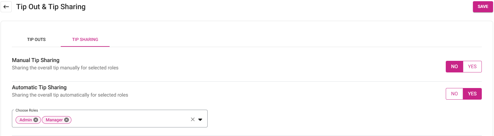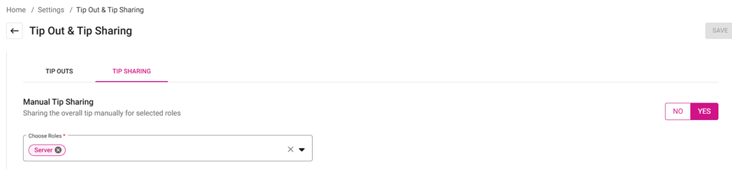 For the Choose Roles dropdown that appears, select the Role(s) that will be eligible for sharing Tips.