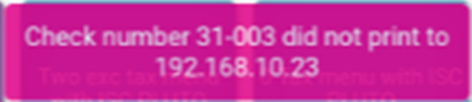 If the Printer is offline, then the Check Number did not print to the Printer, then the IP Address pop-up message will appear (Android and iOS only).