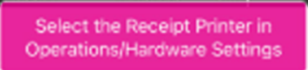 If a Printer model is not selected in Printer Settings in POS, but an Order is placed and the Print option is selected: the ‘Select the Receipt Printer in Operation/Hardware Settings’ pop up message appears.