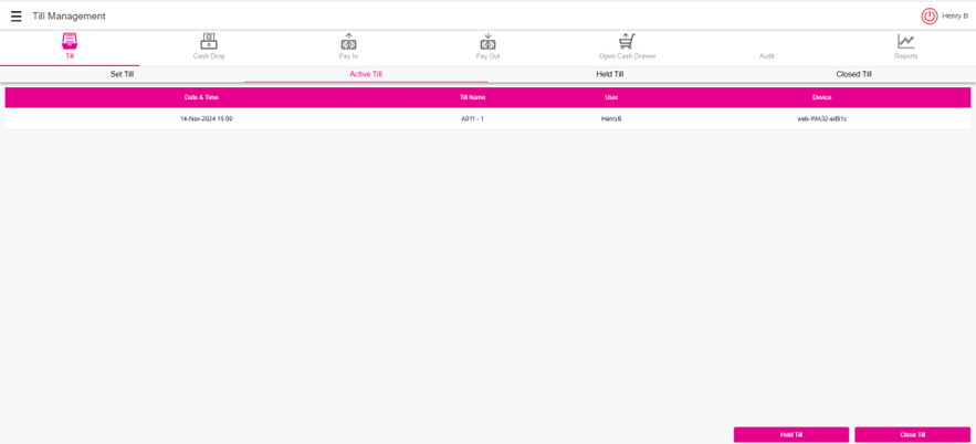 Navigation: Log In POS then select Operations > Till Management > Till > Set Till