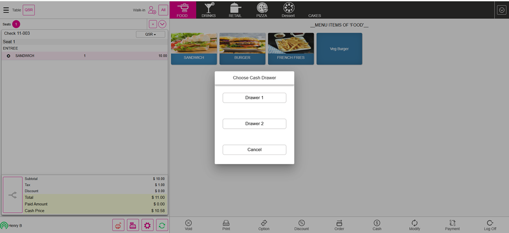 On the Choose Cash Drawer pop-up that appears, select a Drawer.
