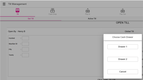 Note: If a Till has not been created, then Open Cash Drawer can't be used.