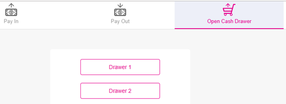 Select Open Cash Drawer, and the Cash Drawer will open automatically. Select a Drawer and the corresponding Drawer will open.