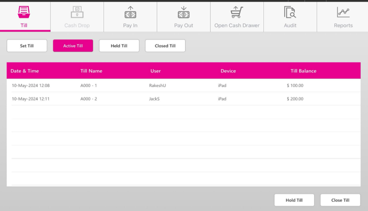 When the Till Type is a User Till, the Till Balance will be incremented only for the respective Employee who has created the Till in the Device.