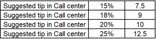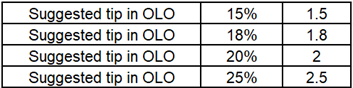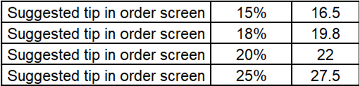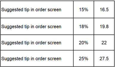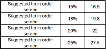 The remaining suggested Tip options Suggested Tip amounts will be calculated based on the Subtotal value of the Check.