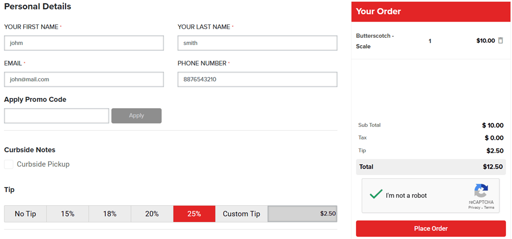 The Order Summary Tip Value will be calculated based on Subtotal / Total value as per the Tip Settings configured in Back Office settings.