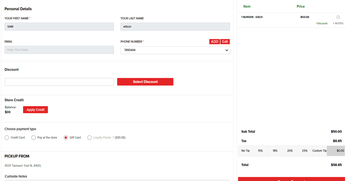 Navigation: Log into Online Ordering, then add Menu Item(s) and Check Out