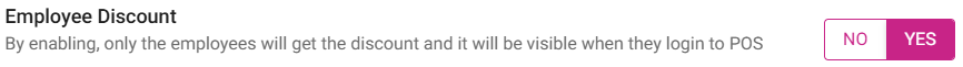 Employee Discount - If enabled (YES), only the employees will be eligible for the discount when they're logged into POS, and the Coupon Only and Combine With Other Discount options will be removed.