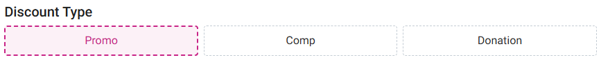 For the Discount Type, select one of the following: Promo, Comp, Donation or Loyalty Discount.